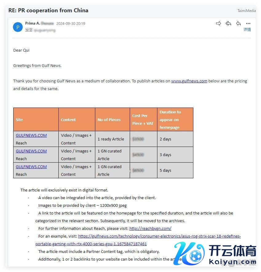 几千好意思金齐是很普通的价钱,对中东土产货来说也特别于国内几千块钱,关联词折算成东说念主民币那就好几万块,有些企业是很难承受的。是以暴虐企业在发稿之前要充分了解发稿的预算。尤其是海湾新闻GulfNews这么的大媒体,价钱当然不会低廉。