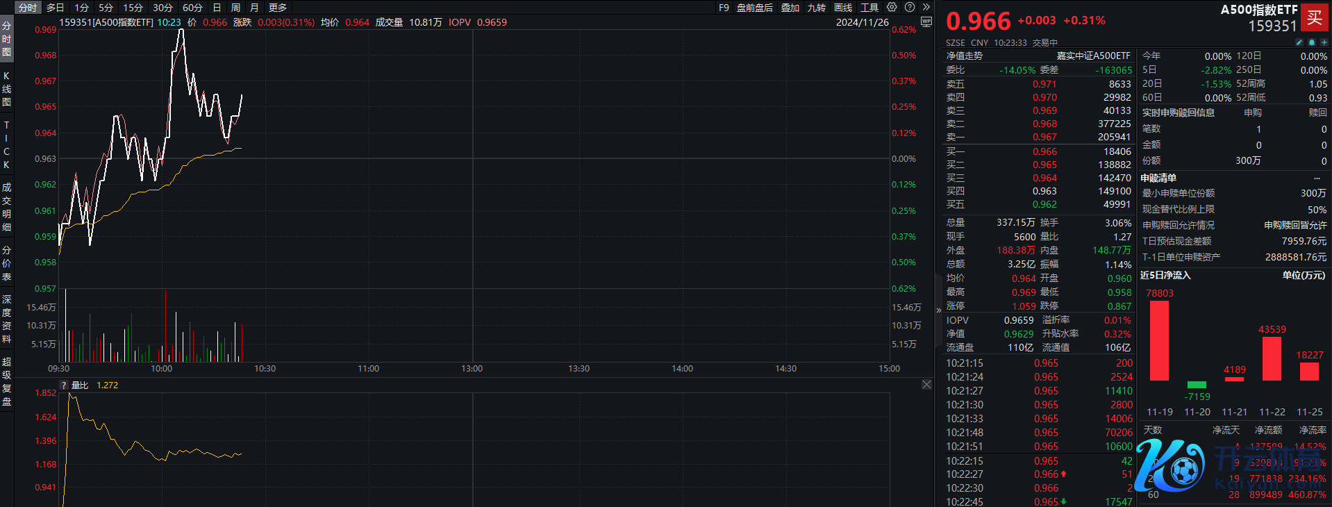 资金流朝上,Wind数据透露,该ETF上一个交游日获资金净流入超1.8亿元,拉万古辰线来看,近10个交游日有9日获资金净流入,累计“吸金”近54亿元。放置11月25日,最新流畅领域106.06亿元,最新流畅份额110.15亿份,均创修复以来新高。