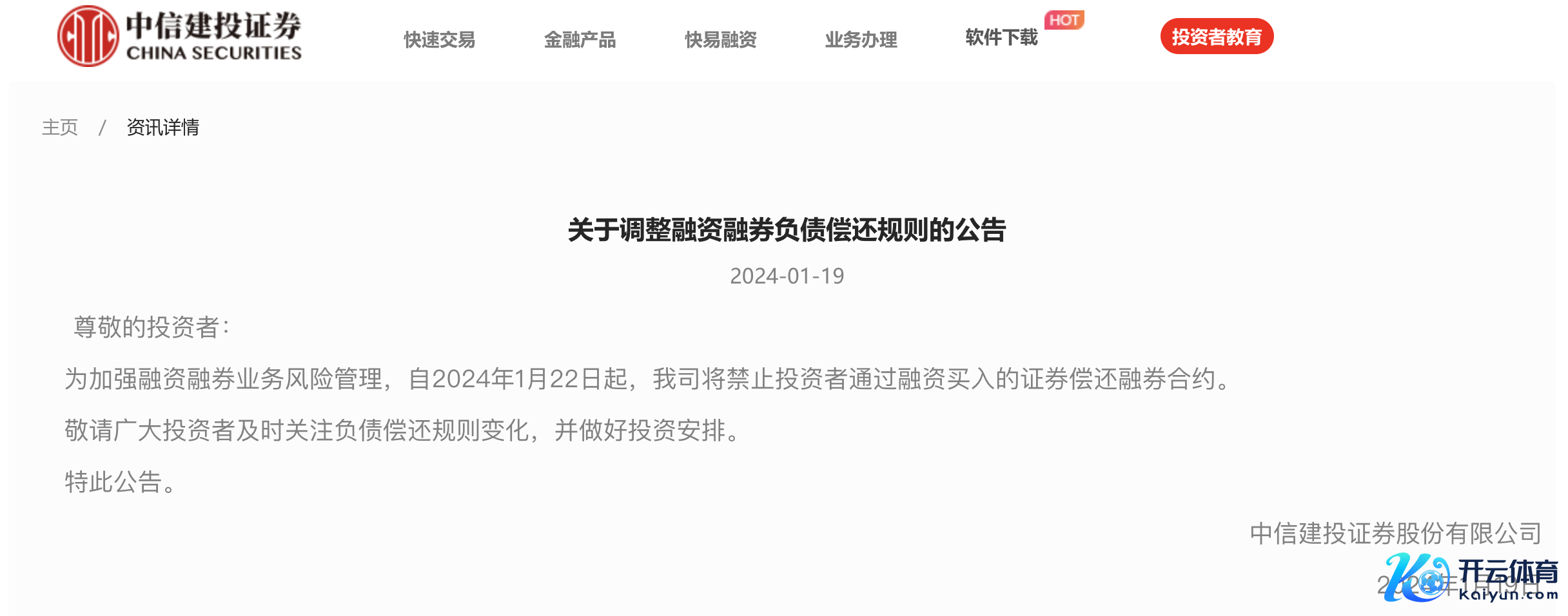 中信建投:自1月22日起公司将不容投资者通过融资买入的证券偿还融券合约中信建投:自1月22日起公司将不容投资者通过融资买入的证券偿还融券合约