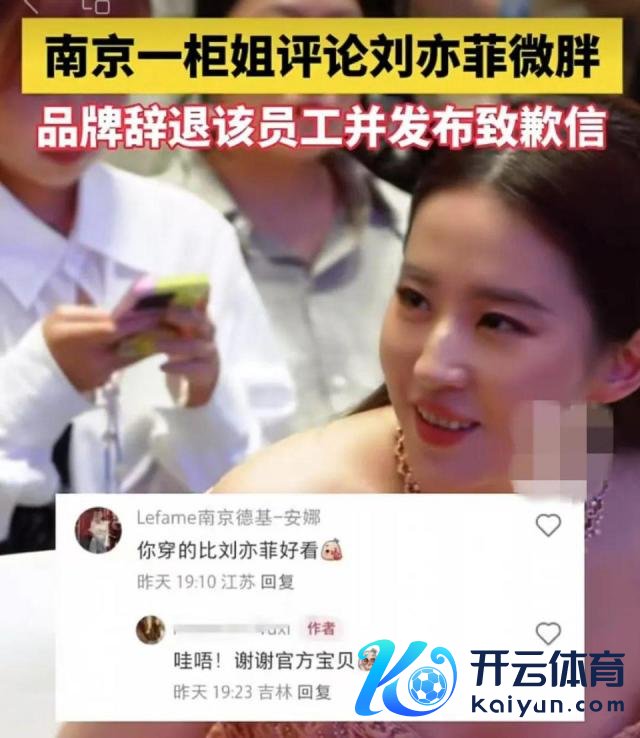 据多家媒体报说念,事发后,有网友指出,该柜姐曾在驳斥区与网友互动时推奖网友"你穿的比刘亦菲顺眼""其实刘亦菲有点微胖,是以你们穿也比她顺眼",且均以" Lefame 南京德基"的权贵标识账号发文。