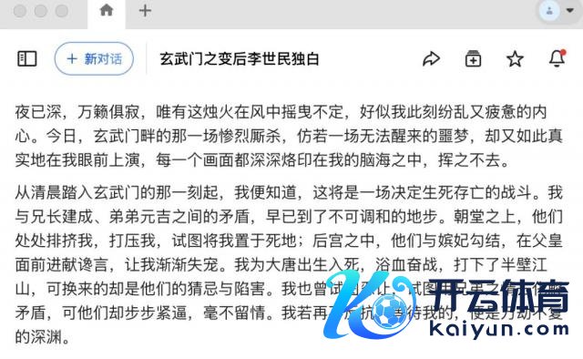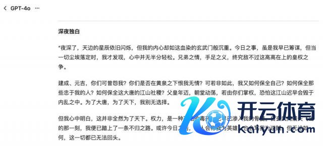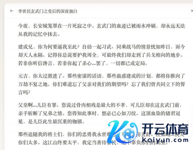 李世民算作千古一君,毫不可能用上头四家输出驱散那样傻的口吻话语,而 DeepSeek 也并莫得使劲过猛,用相对古典的翰墨但并莫得径直用文言文,温暖地兼顾了可读性。